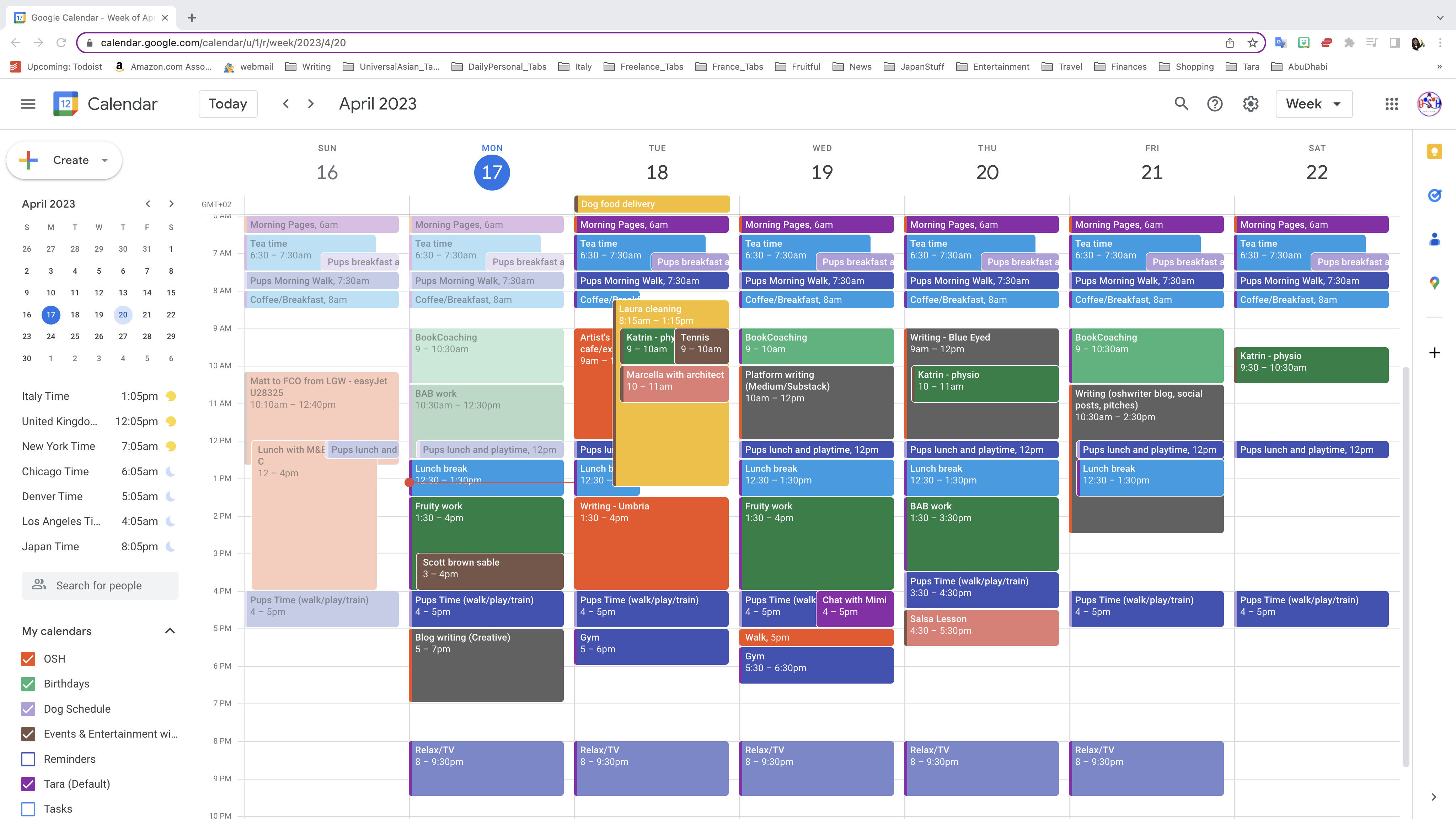 Next, I went to my Google calendar to schedule in when these activities are to be done throughout the day. Now, some of you might be thinking this is just going too far, but I am a big believer in maximizing my productivity. So, I achieve this by also setting aside the times in which my tasks can/should be done. Before any reader moans or rolls their eyes 🙄 at this, note that just because they are in my calendar or on my to-do list doesn’t make it an absolute. I am quite flexible with my times and tasks since about 90% of what I do is designed for and determined by myself, so there are no severe consequences of any kind should I decide to procrastinate, reschedule or even skip something. 🤪