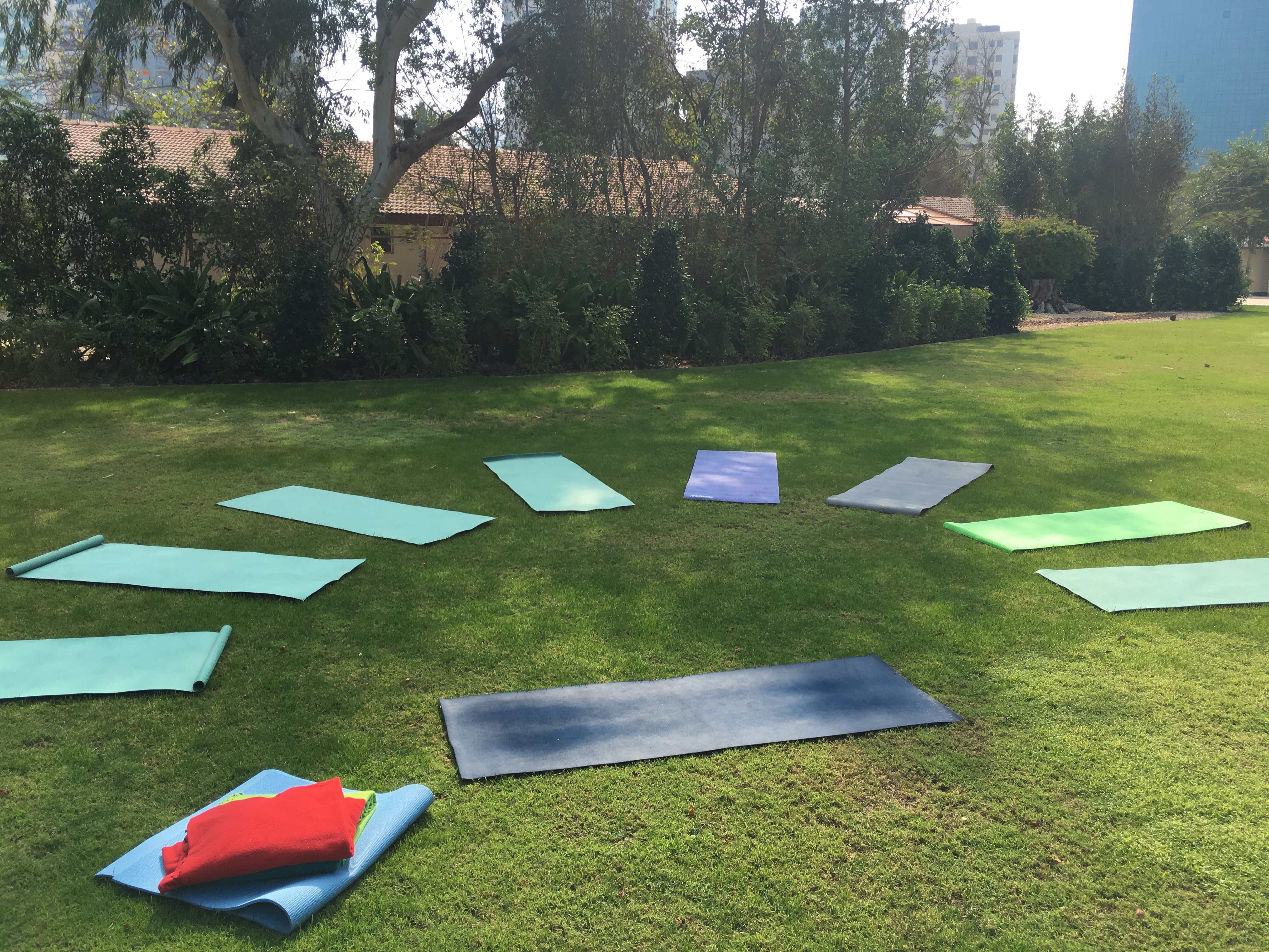 The grounds for the yoga was lovely with a wide open yard and a great view of the Landmark Tower, which is well-known on the Abu Dhabi skyline.